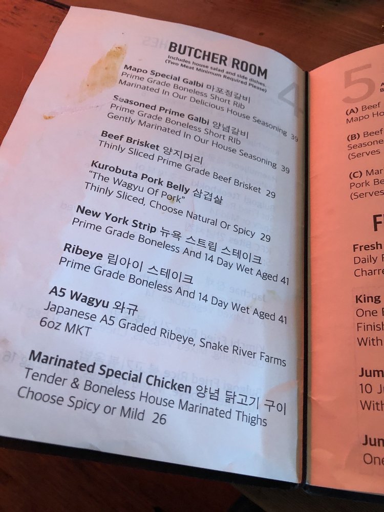 Two meat minimum to come with salad and banchan.